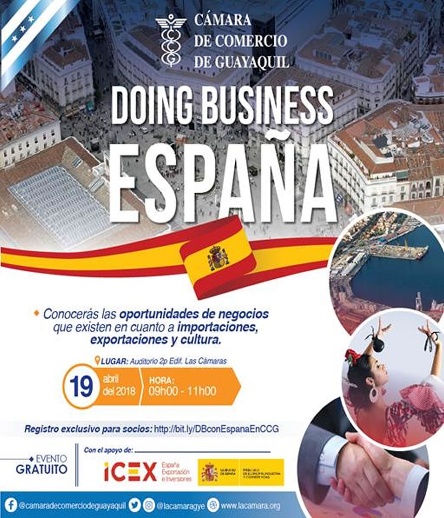 Para conocer las oportunidades de negocios que existen en cuanto a importaciones,, exportaciones y cultura, la Cámara de Comercio de Guayaquil organizó este evento con la intervención de Doña Xiana Méndez, Consejera Económica y Comercial de España en Ecuador y del Econ. Robinson Pánchez, Analista de Mercado de la Oficina Comercial de España. Lugar: Auditorio del Edif. Las Cámaras.