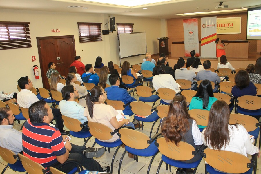 Para dar a conocer la nueva herramienta implementada por el Ministerio de Comercio Exterior denominada SICOM, invitamos a la Ing. Diana Fernanda Yanez Loza, funcionaria del Ministerio. a ofrecernos la charla SISTEMA DE INTELIGENCIA COMERCIAL SICOM. Este evento se realizó en nuestra sede principal y en conjunto con la Cámara Canadiense de Guayaquil.
