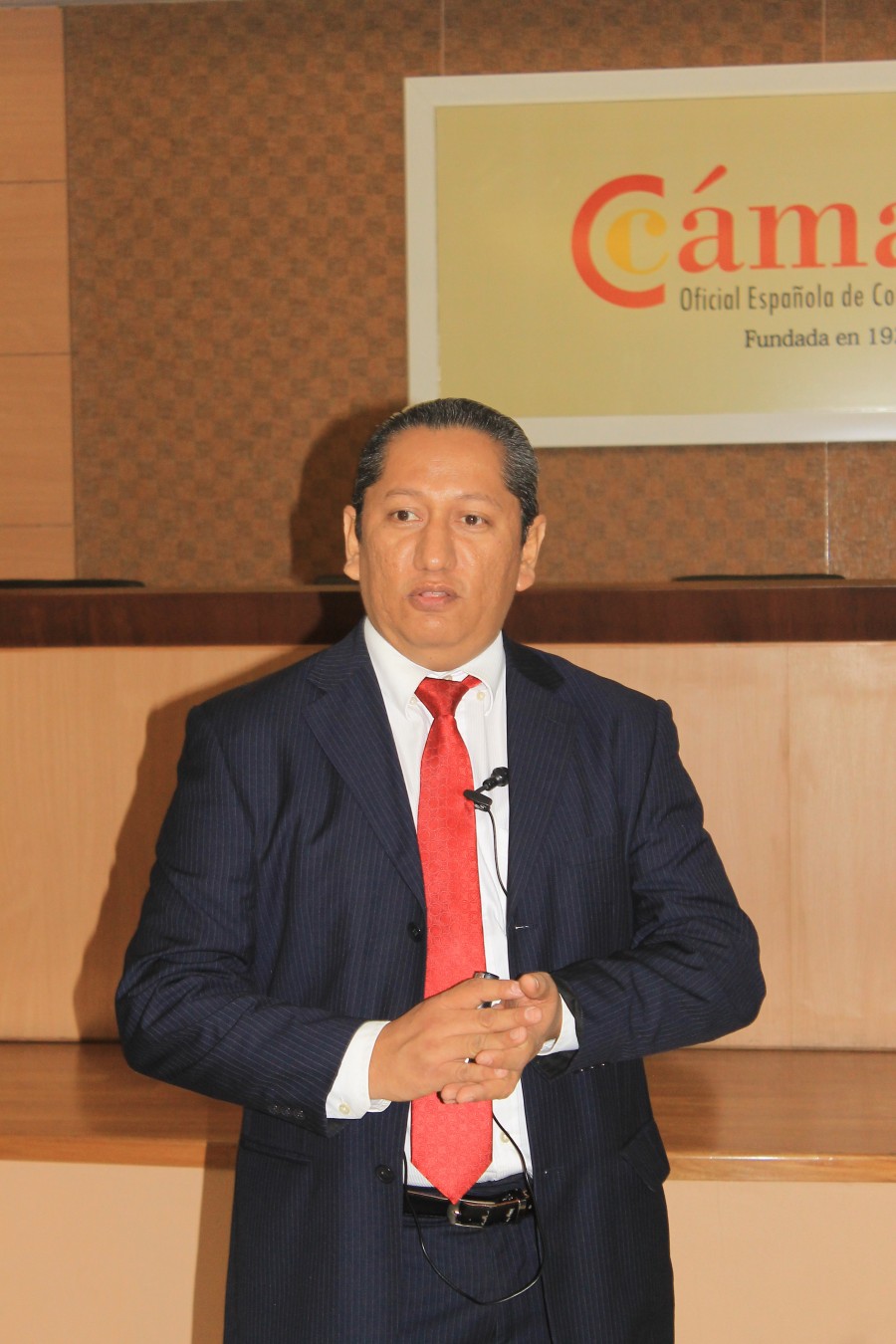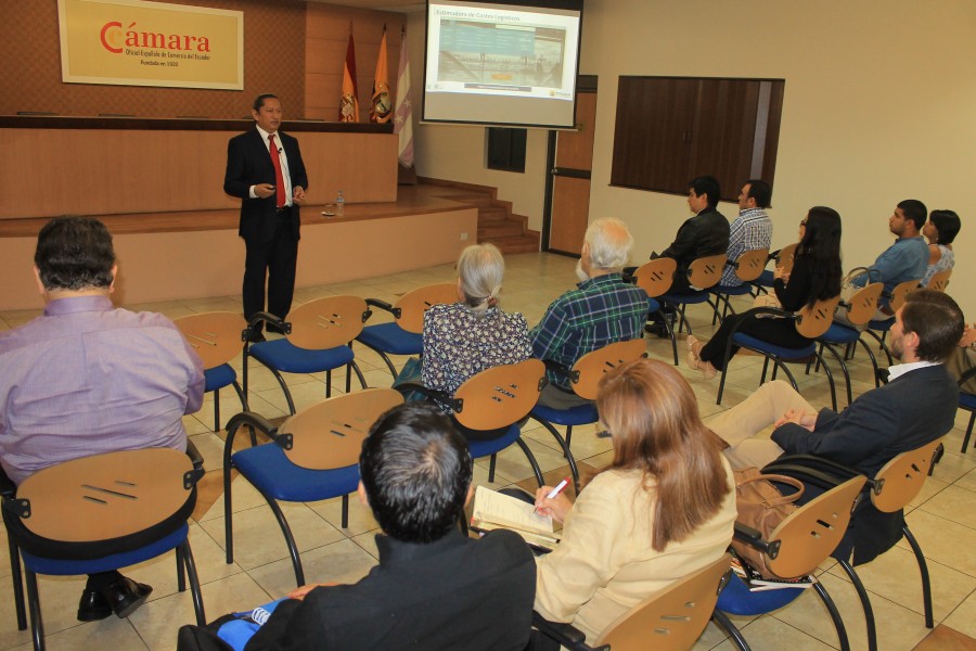 En el segundo día de conferencias se contó con la intervención del Ing. Alberto Décker funcionario del Área de promociones e inversiones de PROECUADOR, con la conferencia “Capacitación introductoria al comercio exterior con enfoque a España”.