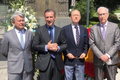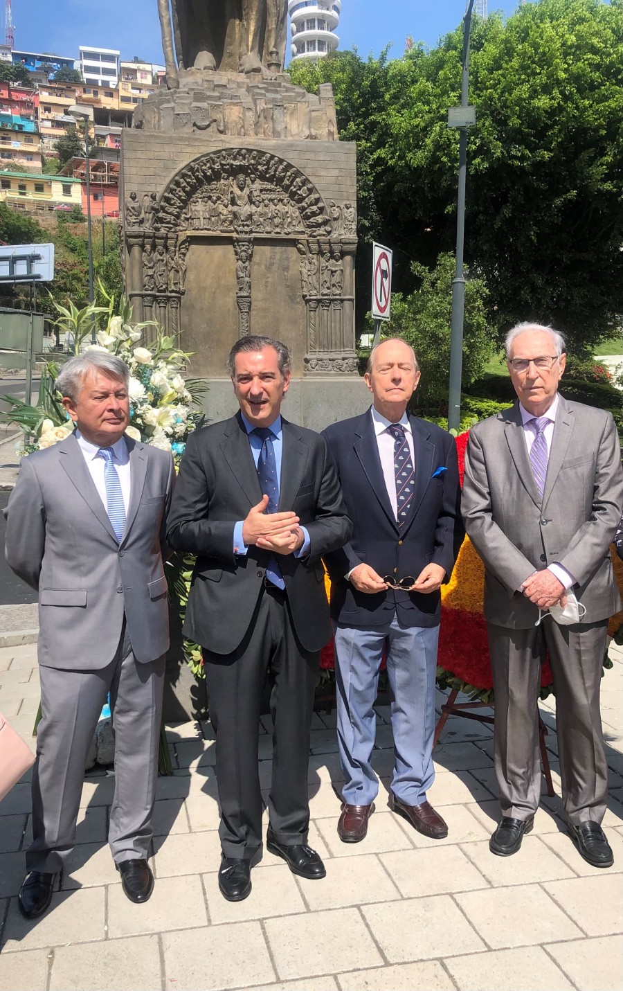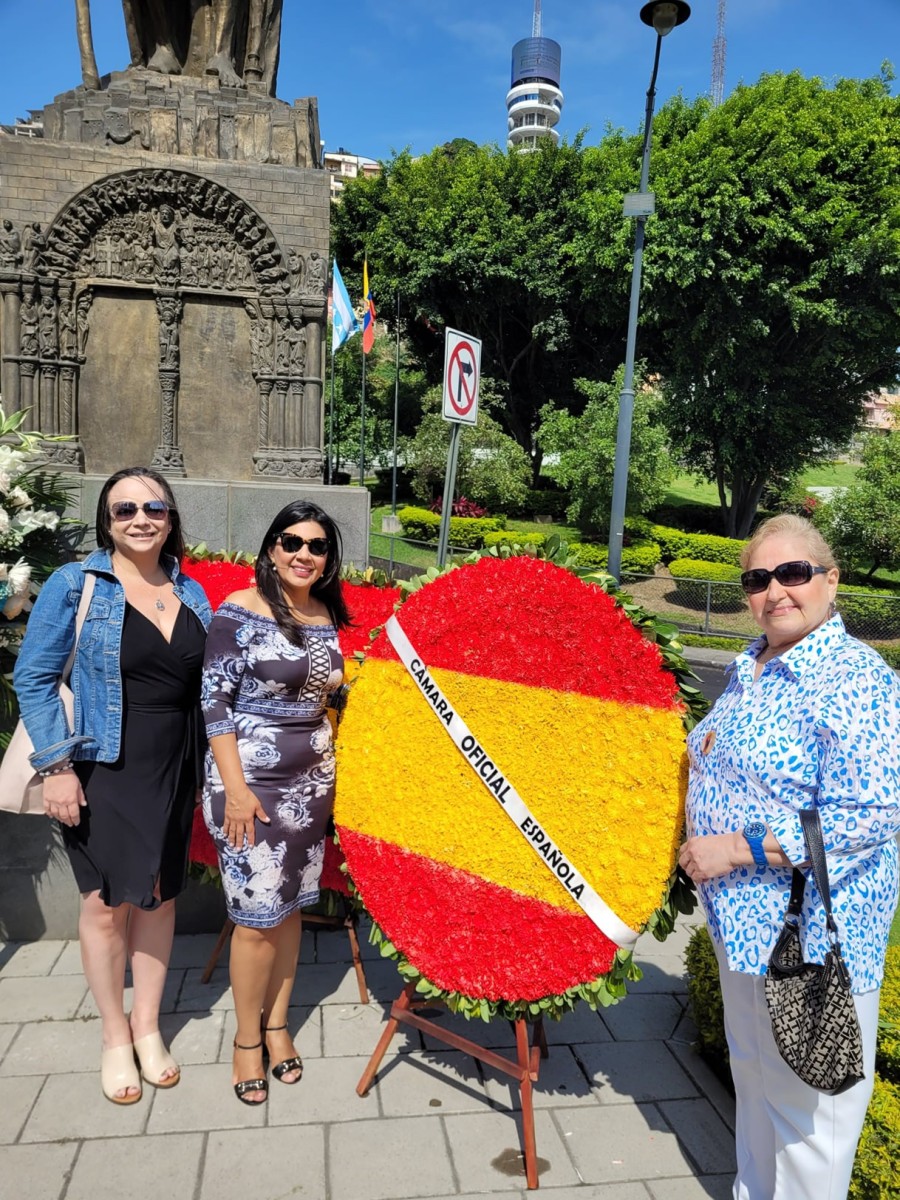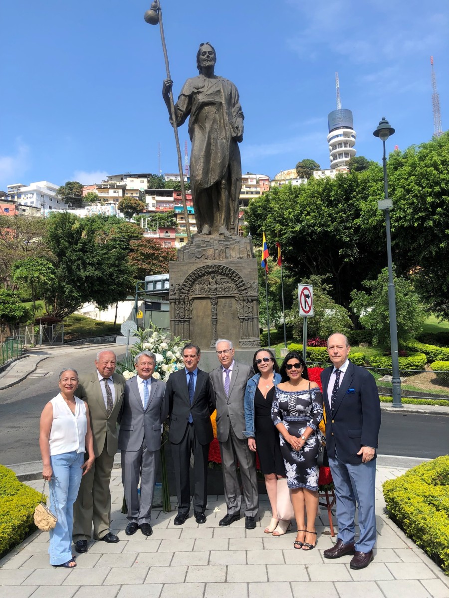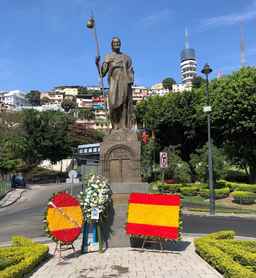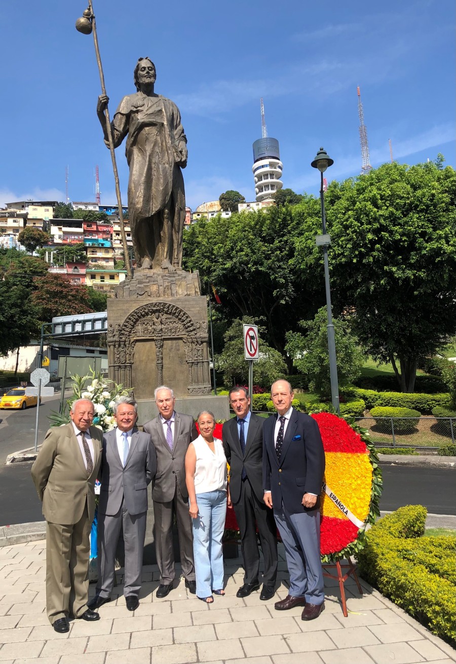 Con motivo del aniversario de fundación de la ciudad de Guayaquil, el Consulado General de España en Guayaquil invitó a las instituciones españolas establecidas en esta ciudad, al acto de colocación de una ofrenda floral al monumento a Santiago Apóstol, Patrono de Guayaquil y de España, situado en la Plaza España en Puerto Santa Ana. Don Jorge Friend, Cónsul General de España hizo el ofrecimiento del acto manifestando que también en Santiago de Compostela se estaba llevando a cabo la colocación de la ofrenda por parte de los Reyes de España y que agradecía al patrono por haberlos protegido en los tiempos de pandemia tanto a la ciudad de Guayaquil como a España. Intervino también el Presidente de la Cofradía de Santiago de la Catedral de Guayaquil. Acompañaron al Cónsul en este acto la Ing. Natalia Miranda, Presidente de la Cámara, Sra. Patricia Meneses, Directora Ejecutiva de la Cámara, Sr. Carlos Prada, Presidente encargado de la Sociedad Española de Beneficencia y la Sra. Nieves Tuset, Presidente del Casal Catalá Guayaquil.