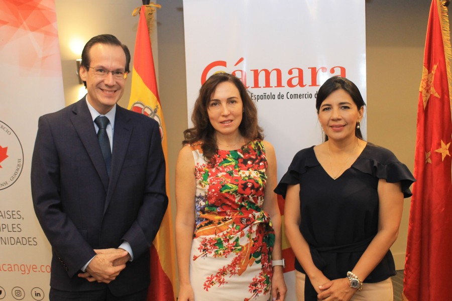 En conjunto con las Cámaras Binacionales Británica, Canadiense, China e Italiana de Guayaquil, realizamos el desayuno conferencia “La importancia de la promoción de exportaciones para la reactivación económica en el Ecuador” con la intervención de la Ing. Ana María Gallardo, Viceministra de Promoción de Exportaciones e Inversiones en el Ministerio de la Producción. Ana María es graduada en la Universidad de Especialidades Espíritu Santo en la carrera de Negocios Internacionales con un Máster de la Universidad de Pompeu Fabra y un Diplomado en Administración Pública por la Universidad Católica y Casa Grande. Tiene 17 años de experiencia en el sector privado, diplomático, público y académico. En su intervención mencionó: las proyecciones del PIB por países, los índices de precios por países, las ventas nacionales; en el ámbito del comercio exterior y apertura comercial mencionó la evolución de las exportaciones petroleras y no petroleras de Ecuador, principales cifras de exportaciones en el 2022, entre otros temas muy interesantes. Asistieron los representantes y socios de las Cámaras organizadoras. Agradecemos a nuestros auspiciantes ANDERSEN y Banco Internacional.