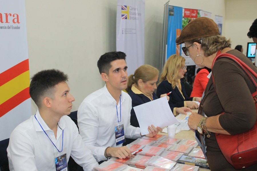 Con la finalidad de establecer vínculos que fortalezcan la relación bilateral, ampliar información y conocimientos sobre un mercado de interés, orientas y guiar a las empresas ecuatorianas sobre la búsqueda de oportunidades de negocios, el 28 de febrero participamos en conjunto con la Oficina Comercial de España, en la Casa Abierta de Comercio Exterior organizada por la Cámara de Comercio de Guayaquil en el salón Las Cámaras. El Econ. Robinson Pánchez, Analista de Mercado de la Oficina Comercial ofreció la conferencia “Cómo hacer negocios con España” que fue muy aplaudida por los presentes. Nos acompañaron también los becarios de ICEX Javier Carrión e Izei Atxalandabaso.