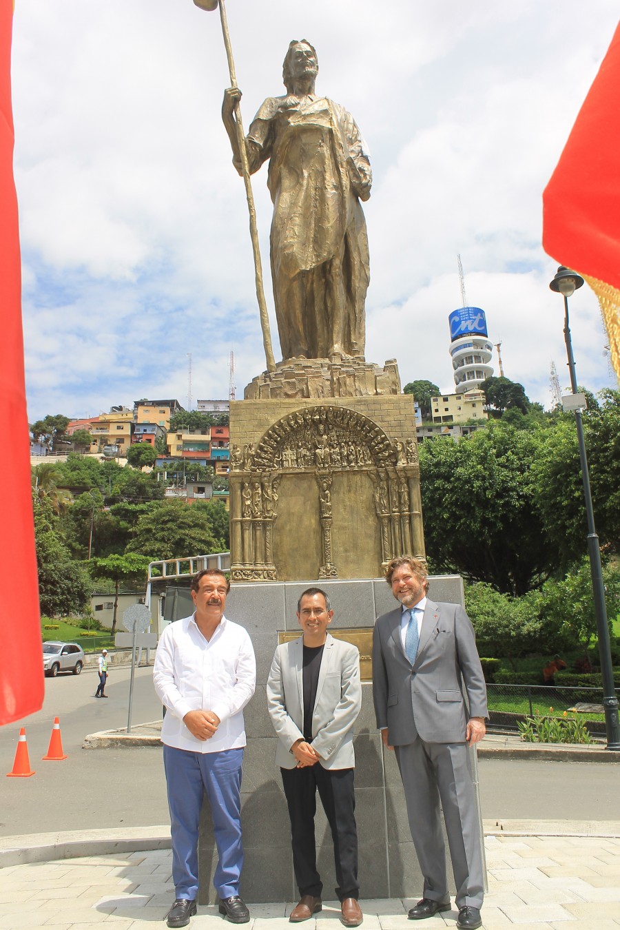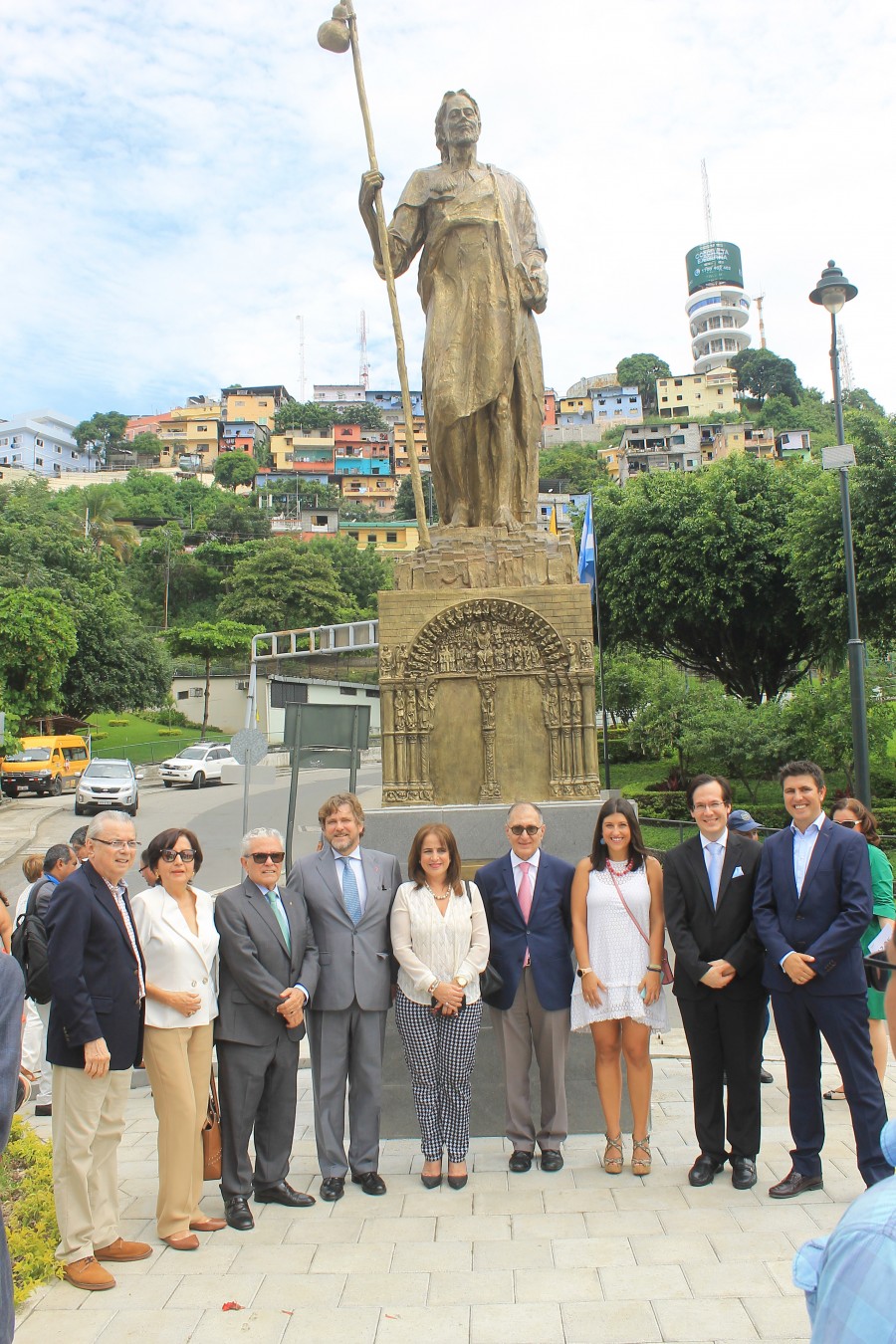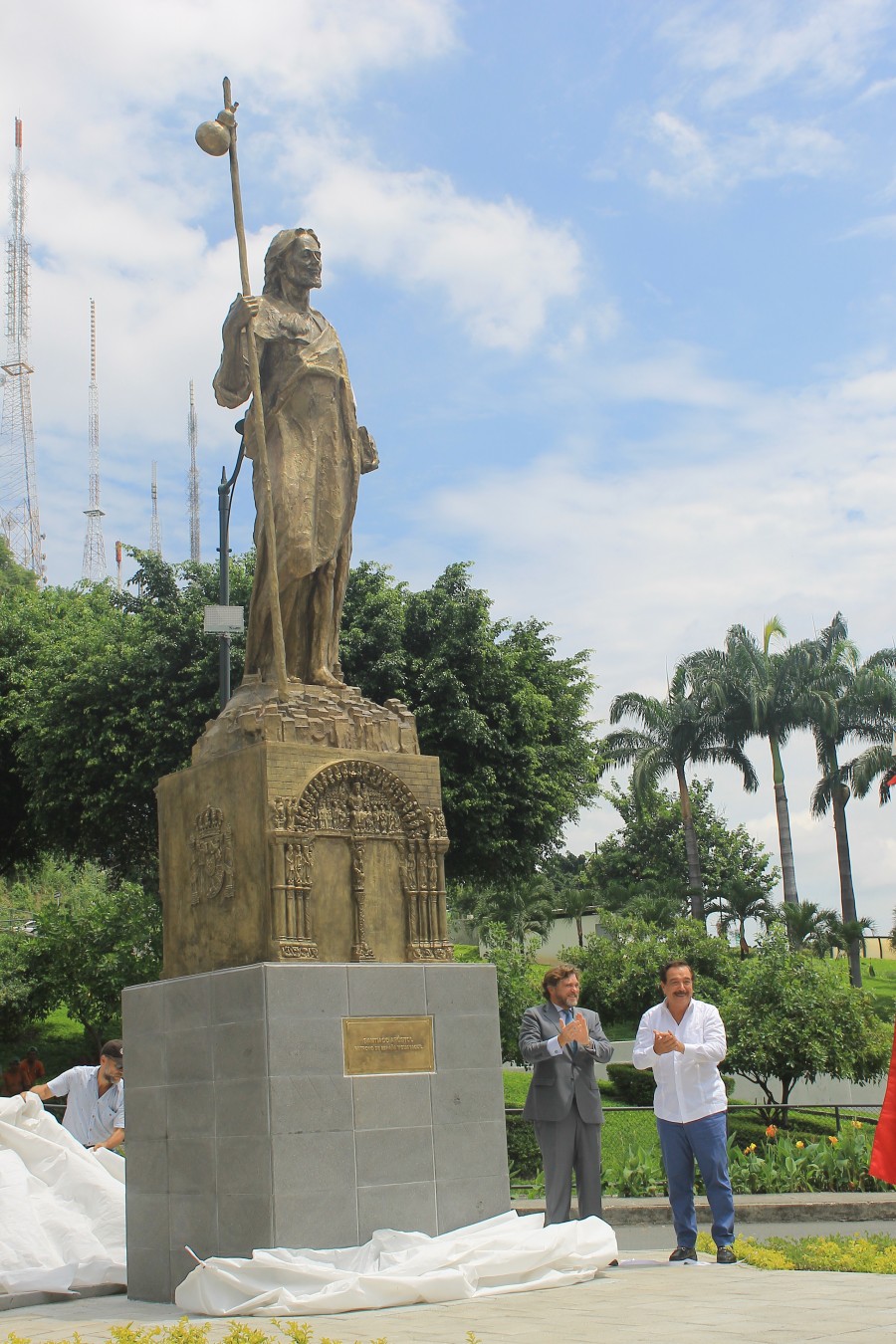 El Alcalde de Guayaquil Ab. Jaime Nebot y el Embajador de España Don Carlos Abella realizaron el develizamiento del monumento a Santiago Apóstol, Patrono de España y Guayaquil, en la Plaza de España en el ingreso a Puerto Santa Ana. Se contó con la presencia de autoridades civiles, militares, religiosas, consulares, representantes de las entidades españolas establecidas en Guayaquil y de la Comisaria del Xacobeo 2021 Doña Cecilia Pereira, Gobierno de Galicia.
