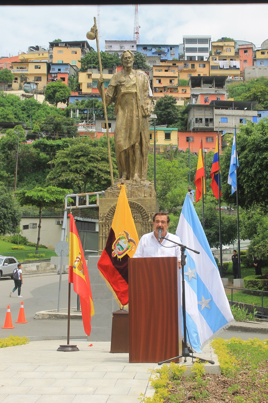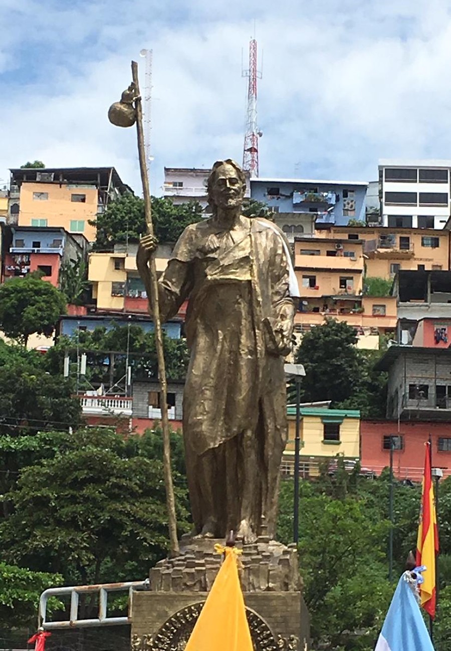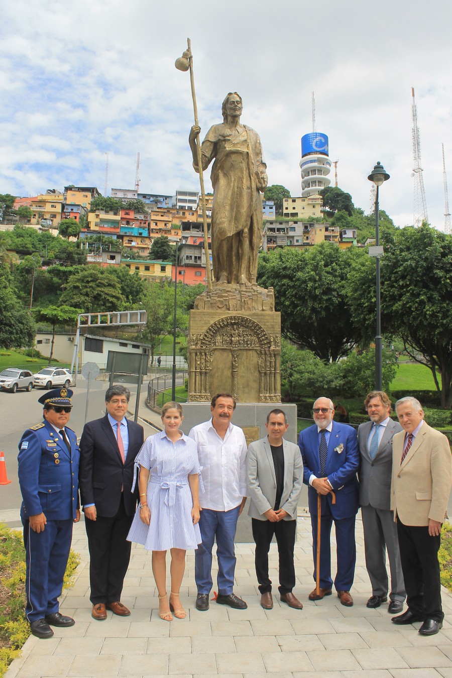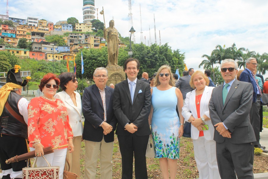 El Alcalde de Guayaquil Ab. Jaime Nebot y el Embajador de España Don Carlos Abella realizaron el develizamiento del monumento a Santiago Apóstol, Patrono de España y Guayaquil, en la Plaza de España en el ingreso a Puerto Santa Ana. Se contó con la presencia de autoridades civiles, militares, religiosas, consulares, representantes de las entidades españolas establecidas en Guayaquil y de la Comisaria del Xacobeo 2021 Doña Cecilia Pereira, Gobierno de Galicia.