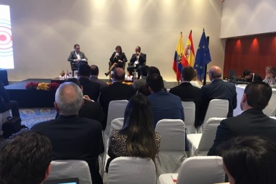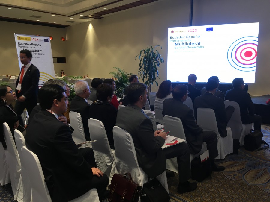 Invitados por la Oficina Comercial de España en Quito, asistimos a las Jornadas de Partenariado Multisectorial para el Desarrollo, organizado por el Gobierno de España a través de ICEX España Exportación e Inversiones, realizado en la ciudad de Quito con la presencia de altos cargos de la administración española y ecuatoriana así como también representantes de empresas españolas. El objetivo principal fue promover vínculos entre las empresas y autoridades ecuatorianas y españolas en los sectores de agua, energía, infraestructura y agroindustria, en los que las empresas españolas son ampliamente reconocidas por su reputada experiencia, innovación y en la generación de soluciones de vanguardia. Se contó con la presencia e intervención de la Secretaria de Estado de Comercio española Doña Xiana Méndez, del Embajador de España Don Carlos Abella y de Arítegui, del Vicepresidente de Ecuador Sr. Otto Sonnenholzner, del ex Ministro de Comercio Exterior Sr. Pablo Campana y del Econ. Richard Martínez, Ministro de Economía y Finanzas. También con la presentación de altos funcionarios de empresas Multilaterales como la CAF, BID, Banco de Desarrollo, Banco Mundial, Banco Europeo de Inversiones, entre otros. Se realizaron reuniones B2B con empresas interesadas en invertir en Ecuador. En este marco, se realizó también un desayuno de trabajo con Doña Xiana Méndez.