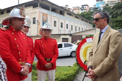 Con motivo del aniversario de fundación de la ciudad de Guayaquil, el Consulado General de España en Guayaquil invitó a las instituciones españolas establecidas en esta ciudad, al acto de colocación de una ofrenda floral al monumento a Santiago Apóstol, Patrono de Guayaquil y de España, situado en la Plaza España en Puerto Santa Ana.
