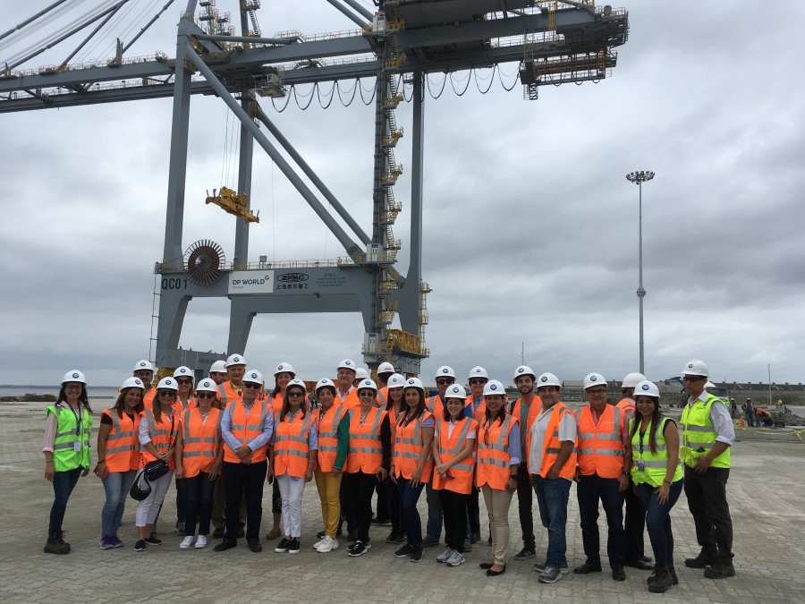 La Comisión de Comercio Exterior de la Cámara organizó y coordinó la visita de los socios a las instalaciones de DP World en Posorja para conocer in sito, las bondades que ofrecerá el Puerto de Aguas Profundas. La Srta. Estefanía Bayas, ejecutiva de DP World dio una amplia explicación del funcionamiento, controles y seguridad que tendrá este puerto. Los socios asistentes agradecieron esta iniciativa de la Cámara.